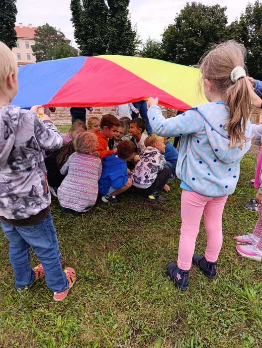 Dnes jsme společně obě první třídy zahájili venku celoroční hru Objevitelé. Seznámili jsme se s Aničkou a Honzíkem, kteří nás budou touto hrou provázet.