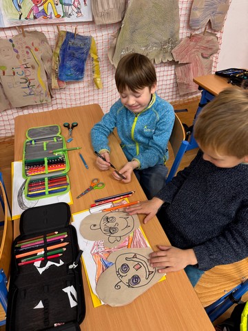 Následovala diskuse o tom, z jakých materiálů se oblečení vyrábí a jak s ním doma nakládáme. Přečetli jsme si pohádku o tričku z Bangladéše, která dětem přiblížila téma fast fashion – rychlé módy. Povídali jsme si o tom, jak se dnes oblečení vyrábí, jaké má dopady na životní prostředí i na život lidí v zemích, kde se šije. Děti samy přemýšlely, co by mohly udělat pro zlepšení situace – například šetřit oblečením, nakupovat méně, dědit po sourozencích nebo vyměňovat s kamarády.