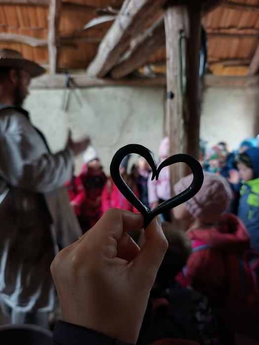 V kovárně jsme se podívali, jakým způsobem lidé v dobách minulých rozdělávali oheň, zjistili jsme, co je to sopouch a prohlédli jsme si, jak se dá ukovat srdíčko. To jsme dostali na památku.