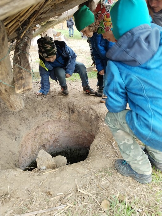 Nakonec jsme navštívili pekárnu, kde jsme poznávali obiloviny, z nichž se mlela mouka. To jsme si také mohli vyzkoušet. Z mouky pro nás paní pekařka připravila těsto na placky, které se upekly v peci. Všem moc chutnaly. Jak svačinku jsme mohli ochutnat jáhlovou kaši oslazenou medem a ochucenou sušenými švestkami a hruškami. A byla to opravdu dobrota. Také jsme se dozvěděli mnoho zajímavostí o tom, jakou stravu lidé v období Velké Moravy jedli a jak potraviny uchovávali nebo zpracovávali. To vše souviselo i s přírodními podmínkami, které umožňovali sklizeň i dvakrát ročně.