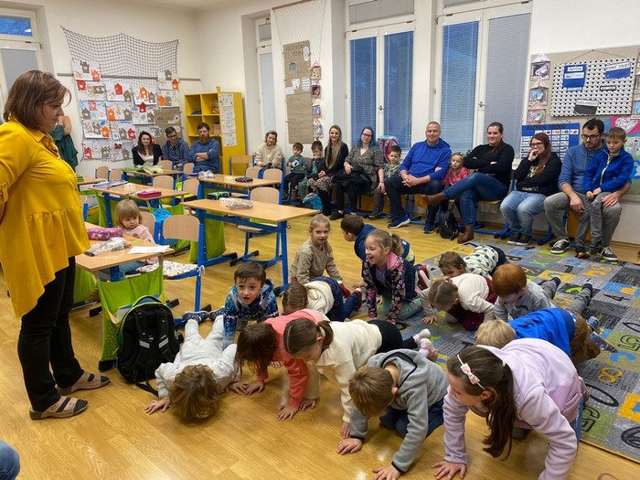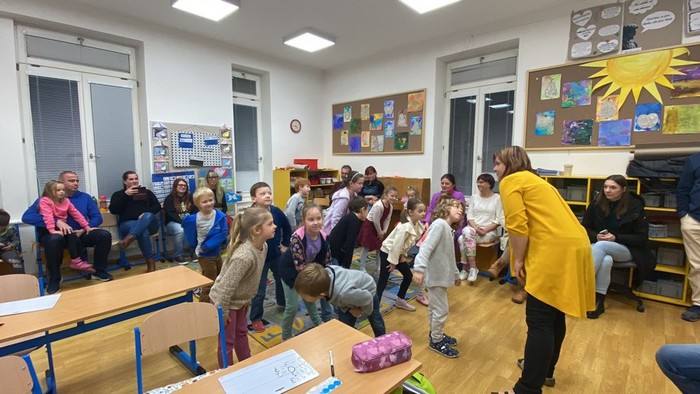Prvňáci si připravili pro rodiče ukázkovou hodinu plnou pohybu a zábavných úkolů. Pracovali s velkým zaujetím a nadšením a všechny zadané úkoly se jim podařily. Rodiče si tak mohli udělat představu o tom, jak na nácvik čtení v domácím prostředí. Pohybové aktivity se dají skvěle zapojit i v matematice. Učení tak probíhá hravou formou a přináší radost z nově získaných poznatků.