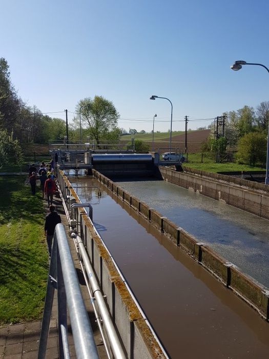Jako první putuje splašková voda z našich domácností do česle, tam se mechanicky odstraní z vody hrubý odpad jako například hadry a vlhčené ubrousky (ty patří do koše, prosím neházejte je do záchodů, protože zastavují stroj na čištění). Poté co se splašková voda zbaví odpadu, je pomocí biologického čištění čištěna. Následuje poslední úprava vody a to přefiltrování přes mikrosíto. Po těchto všech procesech je voda čistá (ale ne pitná) a je vedená do vodního toku. Celý tento proces trvá asi 20 hodin. Vyčistí se asi 90 % ze splaškové vody. Tato exkurze ač smrdutá, byla velmi poučná a děkujeme panu Skryjovi, že nás provedl a poučil o čištění vody.