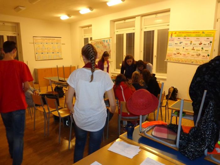 Tentokrát ještě za tmy jsme si připomněli blížící se termín odevzdání absolventských prací, probírali záležitosti okolo plesu a jiné třídní záležitosti.