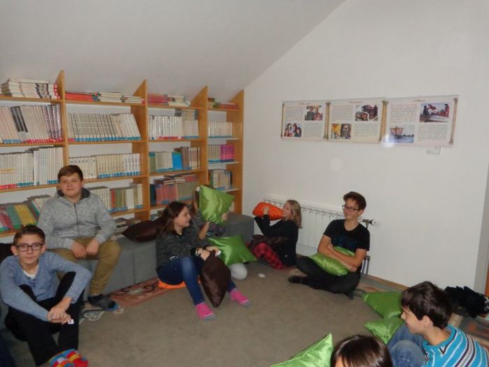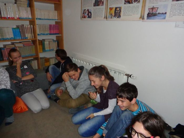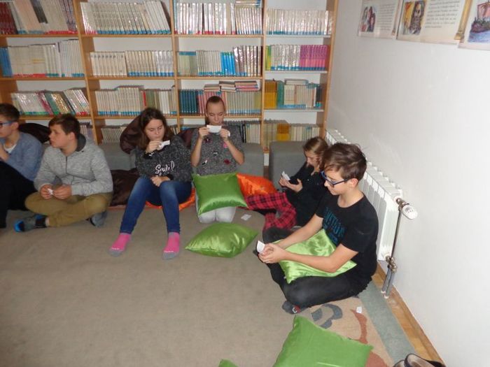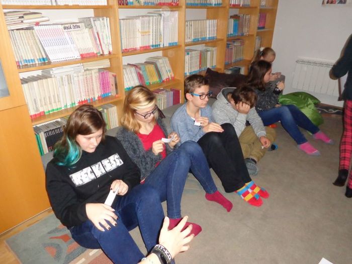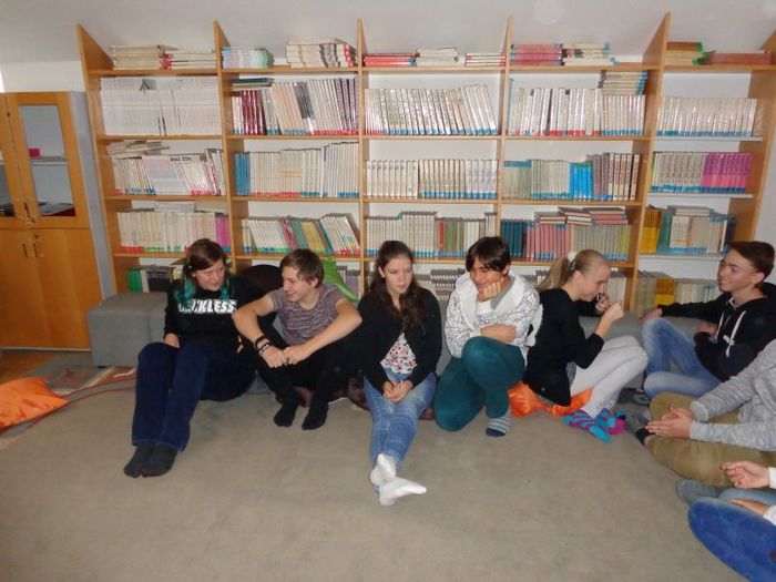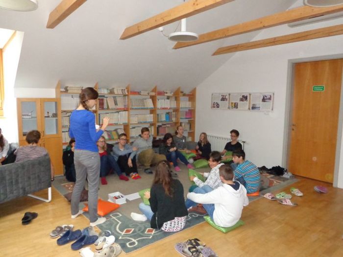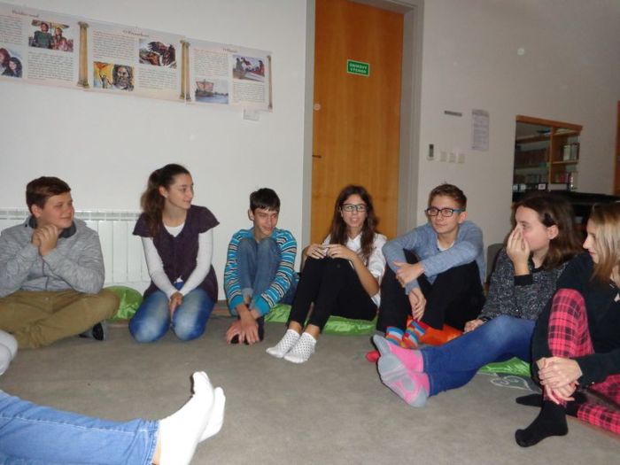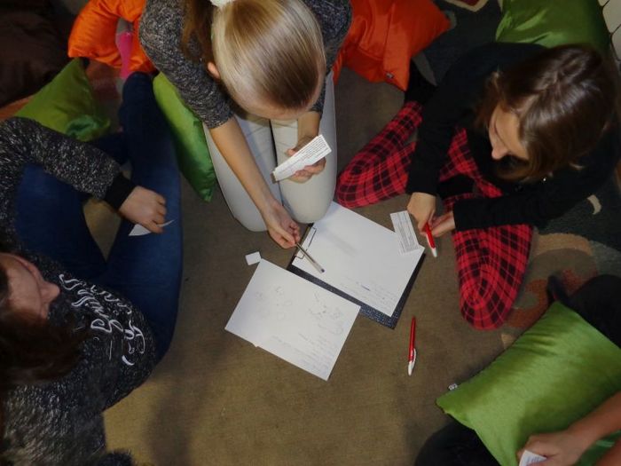 Při prvním setkání se školní psycholožkou jsme si zahráli na reportéry, kde jsme zjišťovali, co ještě nevíme o svých spolužácích. Pak jsme se rozdělili do skupinek a podle zadaných indicií jsme hledali odpovědi na záludné otázky.
