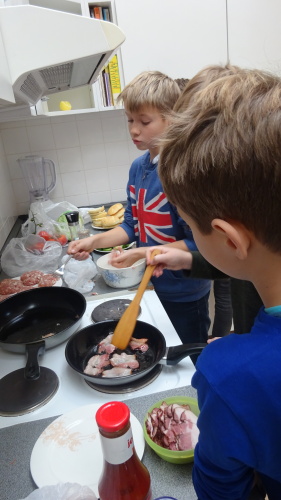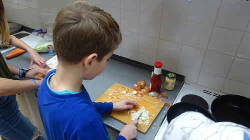 Dnes jsme se v rámci pracovních činností poprvé dostali do školní kuchyňky, kde jsme se pustili do přípravy různých pokrmů. Výsledek vypadal báječně a taky chutnal.