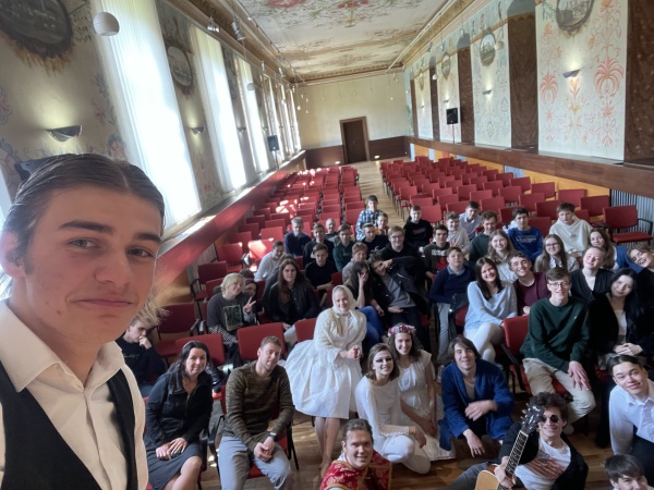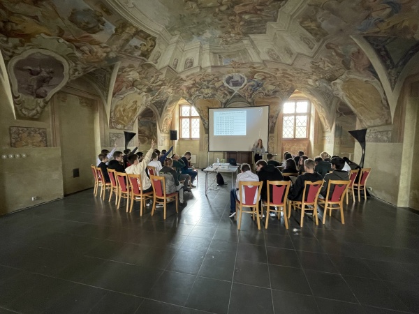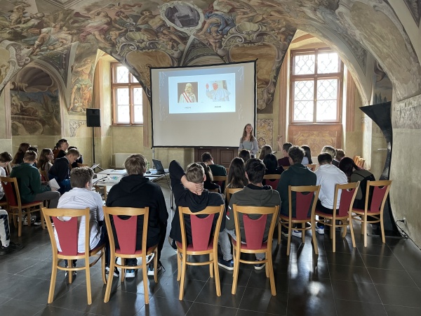 Dnes se žáci 8. a 9. třídy zúčastnili divadelního workshopu na sousedním gymnáziu Velehrad. Program trval téměř celé dopoledne a byl zakončen divadelním představením studentského sboru SGV Stojandrama s názvem Hra o (ne)obyčejném člověku.