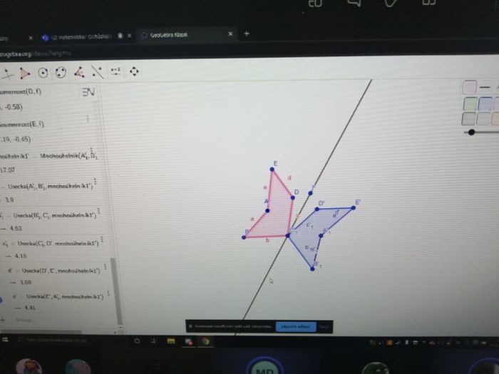 Celý leden se učíme distančně. Hodiny matematiky jsme si zpestřili GeoGebrou, což je počítačový program pro interaktivní geometrii. Opakovali jsme osovou souměrnost a učili se středovou souměrnost.
