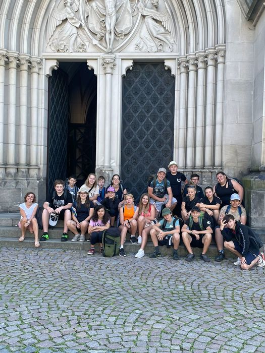 Třídní výlet jsme absolvovali v Olomouci. Program zahrnoval splouvání Moravy na raftech, návštěvu lanového centra PROUD, historický exkurz po Olomouci a světelné hry v Lase Aréně.