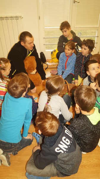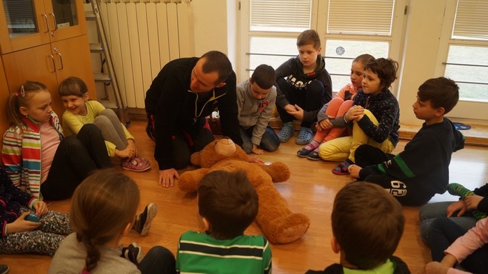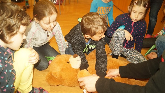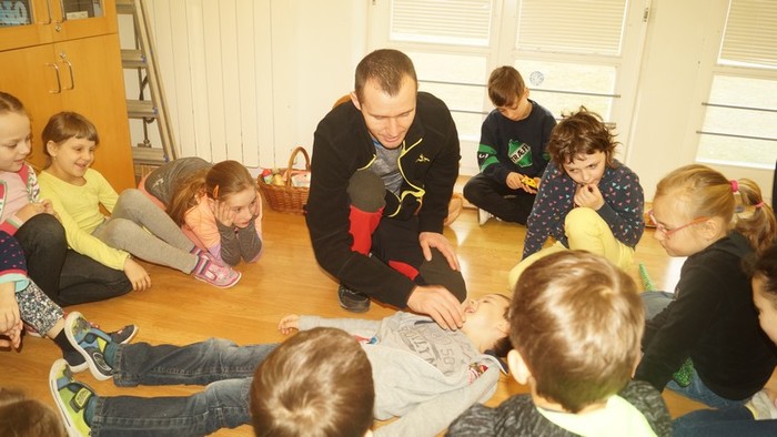 Znát základy první pomoci je pro každého člověka důležité. Dnes k nám přišel další z tatínků, pan Valenta, ktarý pracuje jako záchranář, a děti seznámil se vším, co by o první pomoci měly vědět.