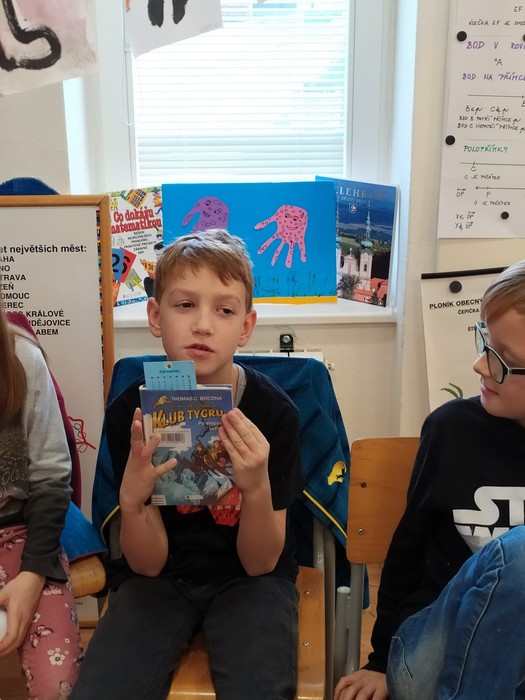 V úterní hodině čtení jsme se s dětmi sešli nad knížkami, které právě čteme.