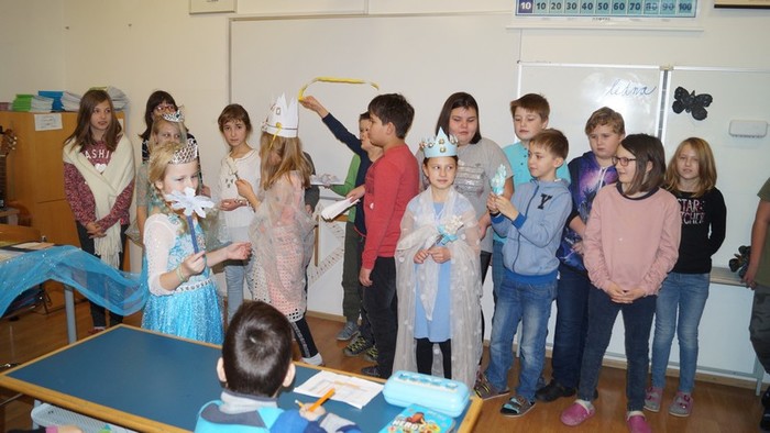 Dnes nás ve třídě překvapily Sněhové královny. Čtvrťáci si s paní učitelkou Kavkovou připravili kostýmy a přišli nás na chvilku rozptýlit, potěšit a pobavit.