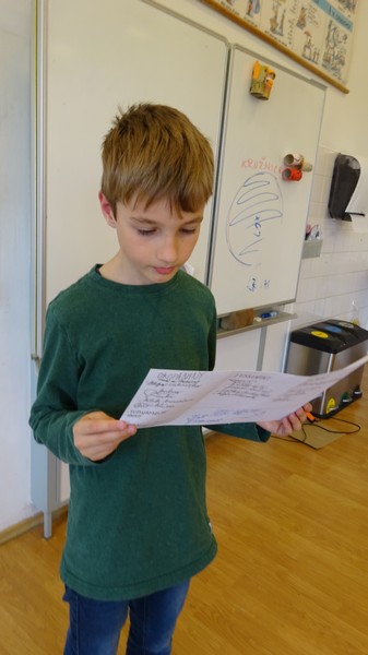 V prvouce se učíme zpracovat určité téma a pak i s "nadhledem poreferovat ". Tentokrát bylo téma velmi zajímavé: Polní plodiny. Každý měl svůj prostor pro sdělení informací ostatním a představení svého díla.