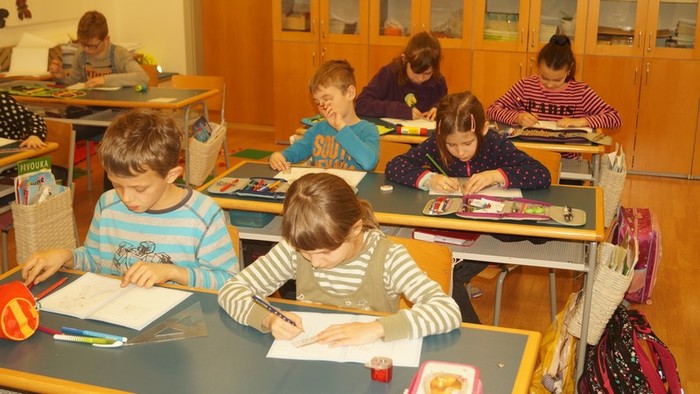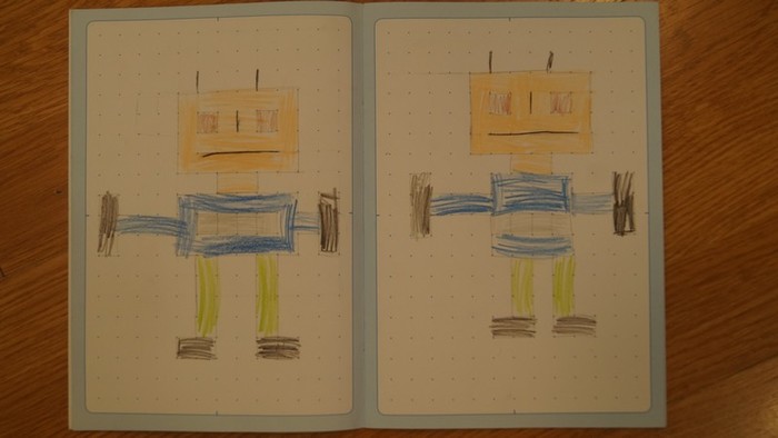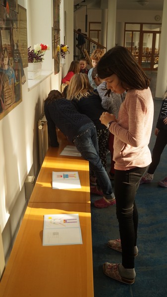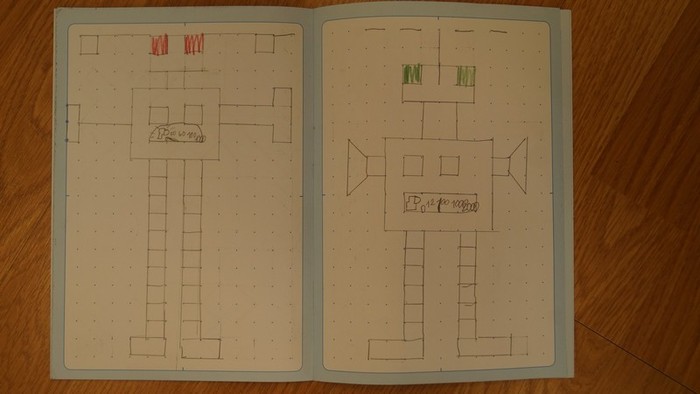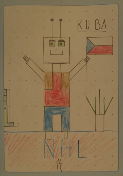 A narýsovat roboty byla velká výzva. Tak se dětem práce povedla, že jsme se pochlubili žákům ostatních tříd, když jsme vytvořili výstavu hotových prací v hale školy.