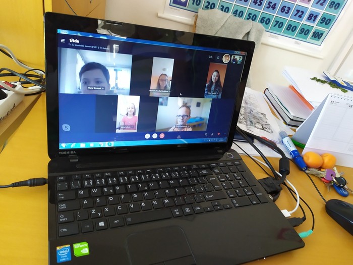 Středa byla také pro nás výjimečná! Prostřednictvím Skypu jsme se spojili a popovídali si s našimi spolužáky, kteří zůstali doma. Vtipy se to jenom hemžilo a dobrá nálada se vznášela okolo nás!