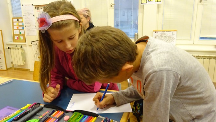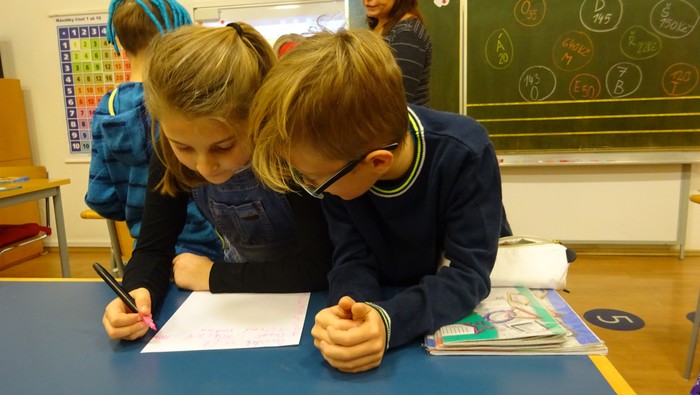 Dnes si žáci v tandemové výuce matematiky vyzkoušeli řešení slovních úloh ve dvojicích. Důležitá byla schopnost spolupracovat, zapamatovat si zadání úkolu a najít odpovídající otázku k slovní úloze. Cílem bylo najít správné řešení a sestavit šifru.