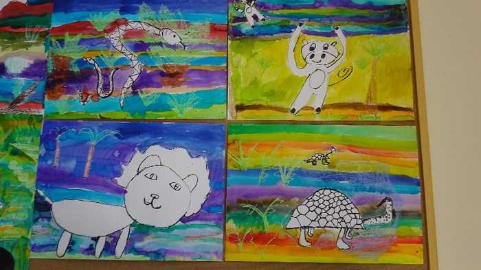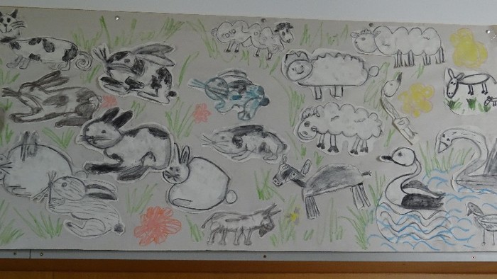 Šatnu a třídu nám zdobí výtvarná díla, která jsme vyráběli v PČ a VV.