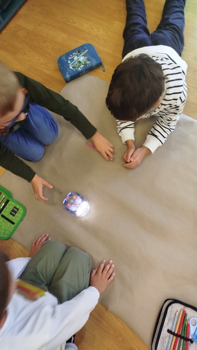 Pátek jsme zakončili s pohádkou o Kuřátku a obilí, orientovali jsme se ve čtvercové síti a zkoušeli programovat BlueBot podle pokynů paní učitelky, ne vždy přijel, tam kam jsme chtěli. Kdybyste slyšeli to ticho, když se rozjel, všichni jsme s napětím očekávali, jestli naše volba pokynů byla správná.