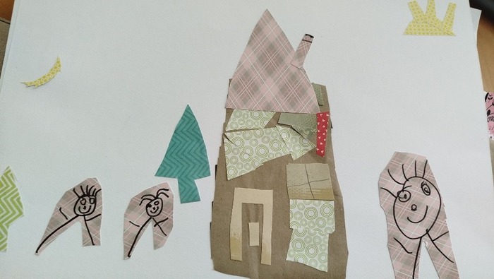 Rozpracované máme koláže našich domovů, ještě na nich musíme zapracovat.