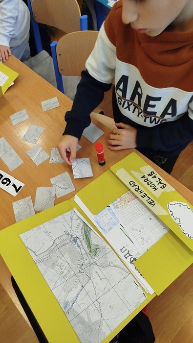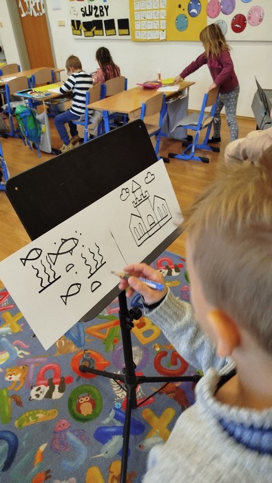 První den projektového týdne jsme strávili ve třídě, kde děti vypracovaly myšlenkovou mapu a pracovaly s mapou, učily se orientovat v prostoru. Na fotografiích je vidět, jak si malí průzkumníci založili vlastní složky, ve kterých kombinovali kreslení a vystřihování jednotlivých částí našeho regionu, během týdne doplňovali o další poznatky a informace. Díky těmto aktivitám se děti naučily nejen základní informace o naší oblasti, ale i to, jak efektivně spolupracovat, rozvíjet svou tvořivost a už i pracovat na napsaných úkolech samostatně.