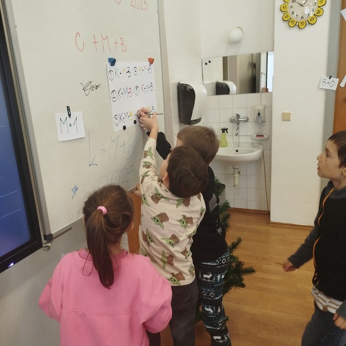 Hned první školní týden v novém roce 2025 jsme společně přivítali trojici K+M+B. Nejenže už víme, že se jedná o počáteční písmena tří králů, ale také jsme zjistili, proč se tato zkratka píše na dveře domů a stavení. Velký dík patří žákům ze 4. třídy a paní učitelce, která pro nás připravila zajímavé úkoly.