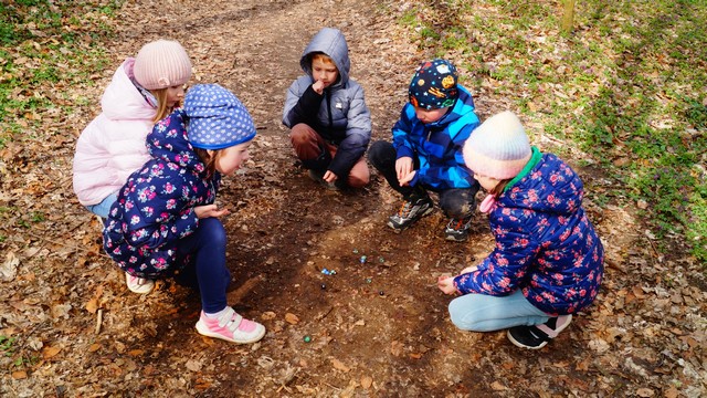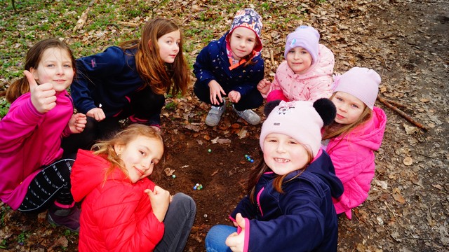 Už se hlásí jaro a tak zkoušíme tradiční jarní aktivity. Cvrnkání kuliček bylo jednou z nich. Nejtěžší na celé aktivitě bylo najít rovný, tvrdý hliněný plácek.