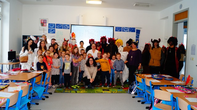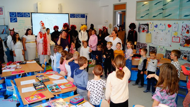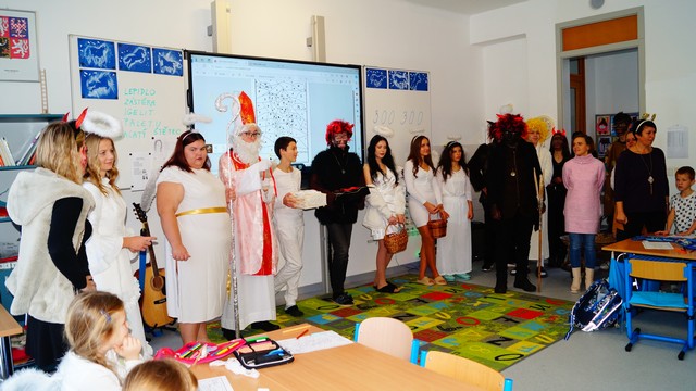 5. prosince k nám zavítala mikulášská družina. Mikuláš měl andělskou i čertovskou knihu, ve které bylo po jednom z dopisů - za naše dobré skutky - andělské, ale i ty, které se zapsaly do čertovského dopisu.