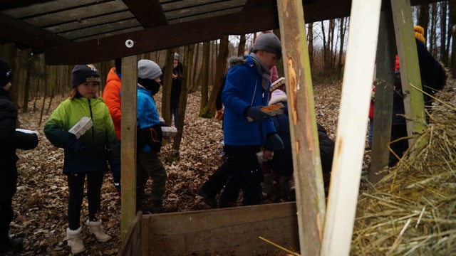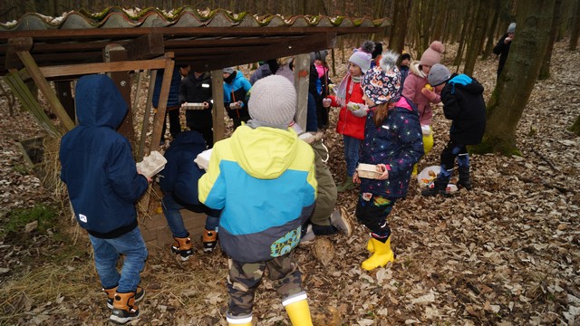 Pak už jsme se vypravili do Háje, kde jsme se seznámili s naučnou stezkou "Okolo Háje". Lesní zvěři jsme trochu přilepšili jablky, hruškami, řepou a jinými dobrotami.