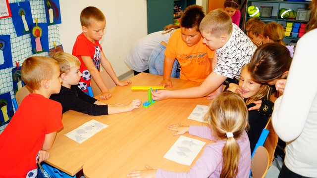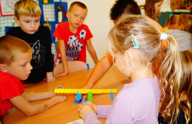Čtvrťáci pro nás sestavili matematické váhy a přinesli nám je, aby nás s nimi seznámili. Budeme se s nimi pravidelně hrát a tak se i učit.