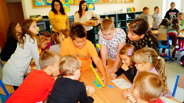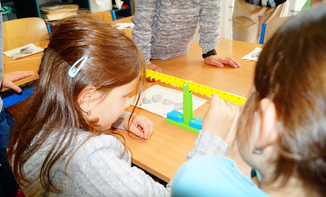 Čtvrťáci pro nás sestavili matematické váhy a přinesli nám je, aby nás s nimi seznámili. Budeme se s nimi pravidelně hrát a tak se i učit.