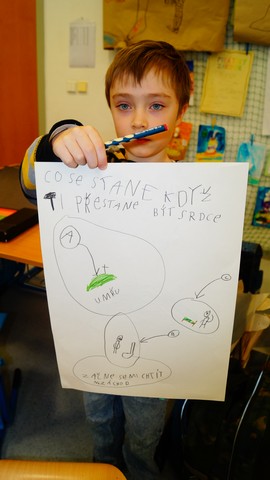 Objevovali jsme svět virů a bakterií. Pomocí badatelské výuky jsme zjišťovali, jak pomůže mýdlo odstranit bacily z těšla. Pomocí lupy jsme zvětšovali obrázky a pozvali jsme k nám maminku Kristýnu, která pracuje jako záchranářka. Ta nás naučila, jak máme postupovat při záchraně zraněných a kdy a jak můžeme přivolat záchranáře pomocí čísla 155 a mobilní aplikace Záchranka. Mamince děkujeme.