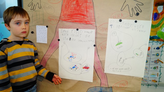 Objevovali jsme svět virů a bakterií. Pomocí badatelské výuky jsme zjišťovali, jak pomůže mýdlo odstranit bacily z těšla. Pomocí lupy jsme zvětšovali obrázky a pozvali jsme k nám maminku Kristýnu, která pracuje jako záchranářka. Ta nás naučila, jak máme postupovat při záchraně zraněných a kdy a jak můžeme přivolat záchranáře pomocí čísla 155 a mobilní aplikace Záchranka. Mamince děkujeme.