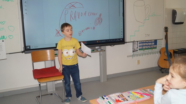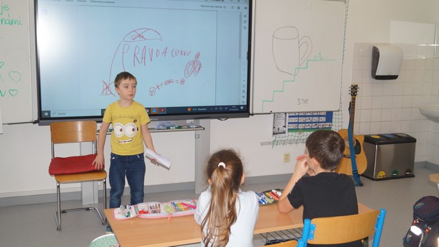 Vašík druhákům, ale také všem žákům 1. stupně, udělal přednášku o cukru. Doporučil řadu postupů zdravého stravování, mimo jiné recept na zdravou snídani, doporučil zeleninu a ovoce k obědu, i pohyb.