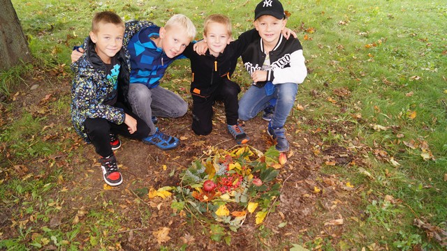 V praktických činnostech jsme si užili krásného počasí a pustili jsme se do vytváření mandal z přírodního materiálu.