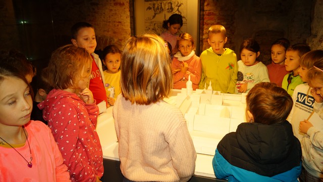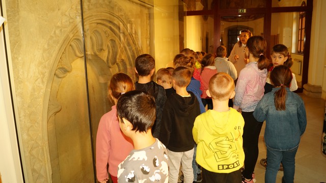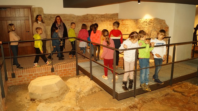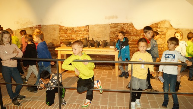 Čtvrteční den jsme zahájili pokračováním v četbě knihy Dobrodružství v klášteře velehradském. Spolu s hrdinou knížky Davidem jsme prozkoumali klášterní prostory. A to se nám velice hodilo, protože hned potom jsme se vypravili na ta místa! Našli jsme opravdový refektář - jídelnu mnichů, středověkou kuchyni, křížovou chodbu, Rajský dvůr i kamenické značky vytesané na jednotlivých kamenech - všechno, o čem jsme četli.