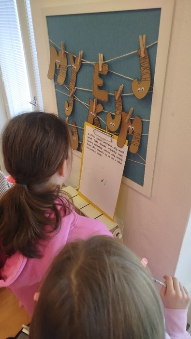 Zakreslili složení vzduchu a zjištěné informace do PĚTILÍSTKU. S písničkou Hlavně, že jsme na vzduchu jsme nakreslili naši představu mořské krabičky a řešili záludné otázky v aplikaci Plickers. Trochu jsme rozvířili vzduch v tělocvičně a v závěru tvořili životabáseň k jevům souvisejícím se vzduchem, představili jsme si, že je např. tornádo člověkem a jak by mohlo vypadat, popis jsme společně zadali do ChatuGPT, který nám vygeneroval obrázky.