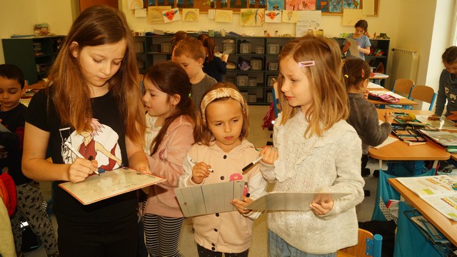 Dnešní aktivita v matematice předpokládala vytvoření správné strategie. Úkolem bylo napsat co nejvíce různých příkladů získaných od spolužáků. Důvody, proč se někomu nedařilo, jsme si vzájemně objasnili. Většinou to, bohužel, byly nefunkční fixy. Někdo si příklady opisoval jen od nejlepších kamarádů. Zajímavým důvodem ale bylo i to, že některé dítě všem trpělivě nechávalo příklady opisovat, a samo pak nic nezískalo.