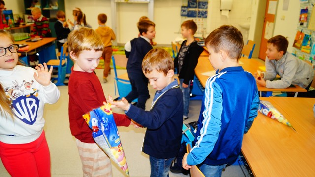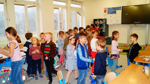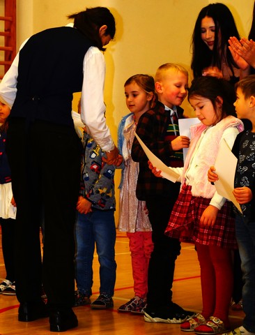 Dnes jsme měli výborný den! Hned ráno jsme se sešli v tělocvičně školy, kde bylo našim prvňáčkům slavnostně předáno jejich první vysvědčení. To dostali z rukou deváťáků. Společně jsme zazpívali naši připravenou píseň Statistika a zhlédli předtančení žáků 9. ročníku.