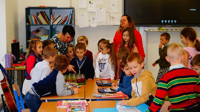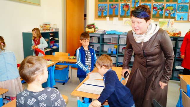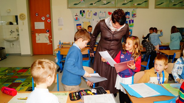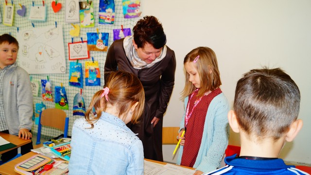 Těsně před posledním zvoněním se za námi ještě přišla podívat paní ředitelka a zkontrolovala naše samé jedničky.