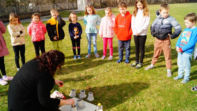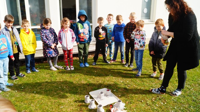 Děti v kroužku Poznáváme přírodu vyráběly v pondělí sopku. A aby to nám ostatním nebylo líto, ukázaly nám jednu aktivní. Sopka soptila, sluníčko svítilo, bylo to bezva☺.