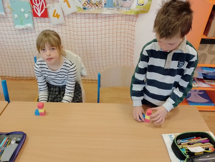 Pověděli také svým spolužákům, jaké povolání má Bolečkův tatínek. Jako truhlář potřebuje ke své práci spoustu dřeva a zajímavého nářadí. Prváčci jsou sice na takovou práci ještě malí, ale poradili si. Podle složitých plánků postavili velké i malé krychlové stavby, do kterých by mohl jeho tatínek vyrobit krásný dřevěný nábytek.