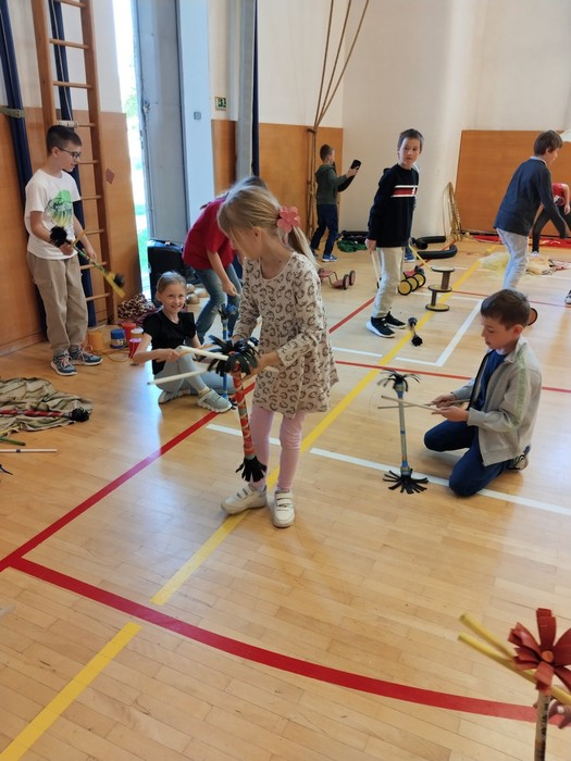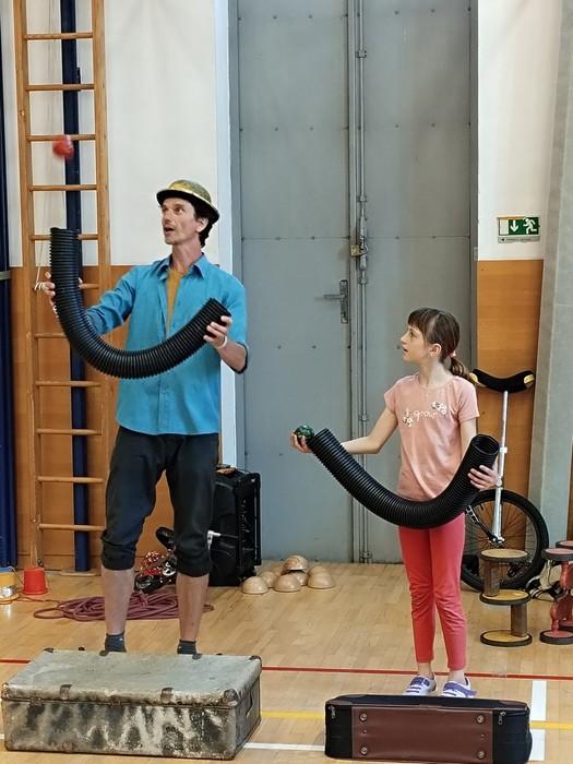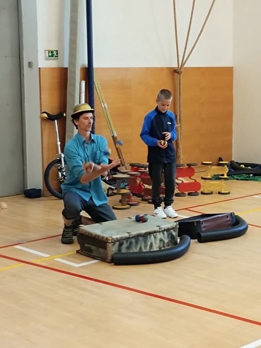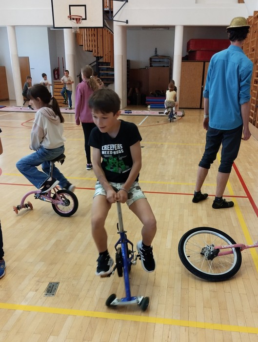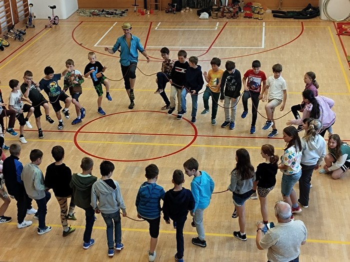 Návštěva cirkusu nemusí znamenat jen sedět v publiku a pozorovat výkony cirkusových umělců. O tom se přesvědčili naši žáci, kteří přímo v naší škole prožili cirkusovou dílnu s Jiřím Sadilou. Zkušený artista přivezl velké množství pomůcek, s nimiž se dají některé kousky nacvičit. Předvedl, jak se které dovednosti dají nacvičit a vše ostatní už bylo na našich žácích. Chce to jen trošku vytrvalosti a odhodlání. Některé kousky si vyzkoušeli i sami vyučující, takže to byla zábava nejen pro žáky, ale i pro ně.
