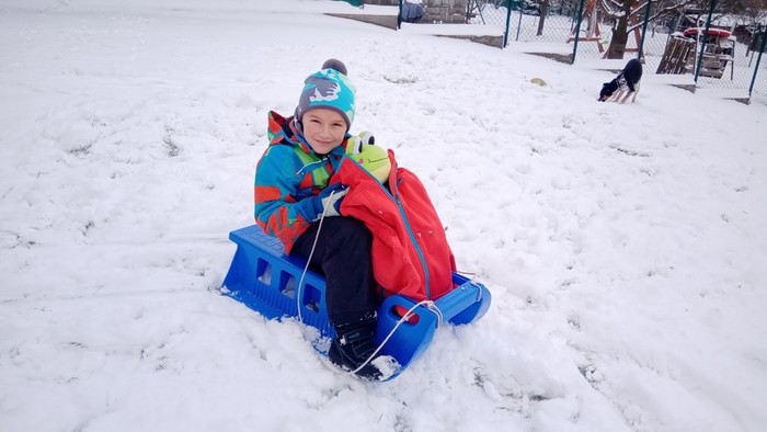 Venku konečně napadl sníh a tak se našla příležitost užít si venkovských radovánek a bílé porývky.