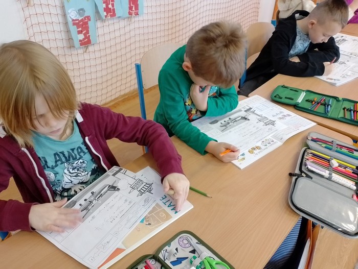 V neděli oba naši kamarádi navštívili divadelní představení pro děti Knihy džunglí a tak došlo i na kulturní zážitky. Pondělní výuku zpestřil dětem i pracovní list, který Davídek připravil za pomoci maminky. Je totiž učitelkou matematiky a tak na děti čekaly zajímavé rébusy, díky nimž jsme se dozvěděli, jaký typ letadla se v Kunovicích vyráběl. Společně také prolistovali kalendář letadel, které se od nás prodávají do celého světa. Mnohokrát děkujeme za spolupráci na naší celoroční hře.