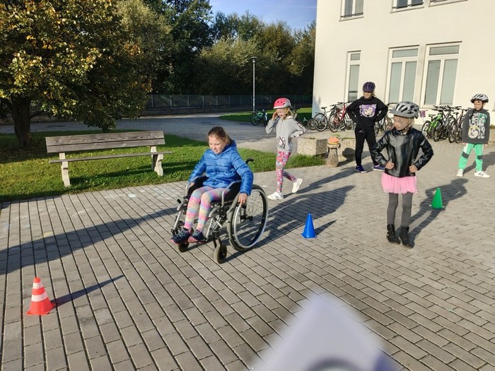 Na děti čekaly tři zajímavé aktivity venku, zbývající činnosti probíhaly v učebnách. Zkoušeli jste například někdy jezdit na invalidním vozíku? Víte, co je a není povinnou výbavou jízdního kola? To všechno a ještě mnoho kvízů, testů a her s dopravní tématikou si žáci vyzkoušeli na Ipadech.