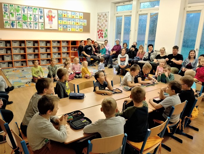 Včera v odpoledních hodinách proběhl den otevřených dveří v 1. třídě. Prváčci tedy přivedli rodiče do školy, aby jim ukázali, co už se za ty dva měsíce společně naučili.