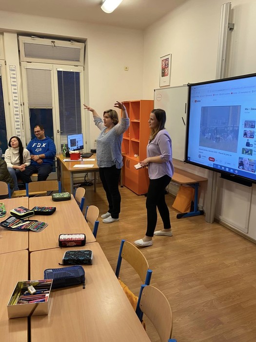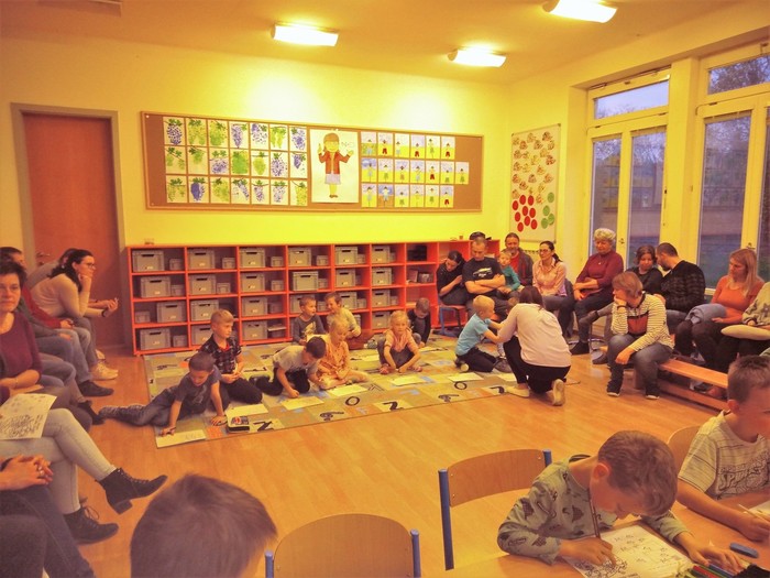 Poté se začali věnovat matematice. Jedna skupinka ukázala, jaká písmenka pomocí hmatu dokáží poznat. Druhá skupinka předvedla, jak funguje naše chytrá tabule, a s pomocí interaktivních cvičení počítali ve slovech slabiky. A opět se skupinky na úkoly vyměnily. Na závěr děti zazpívaly rodičům písničku, kterou si pro ně připravily.