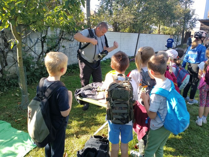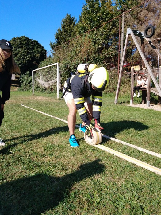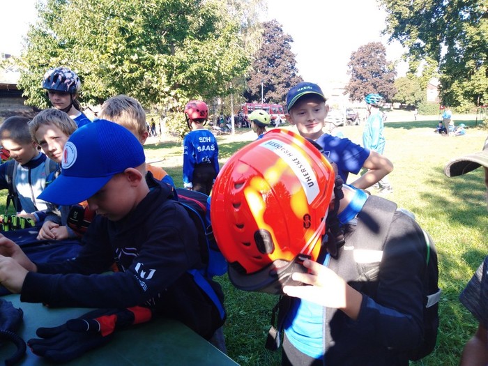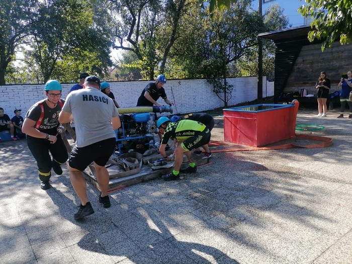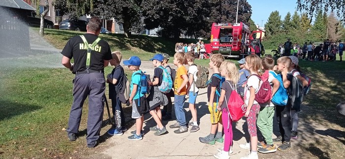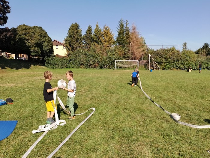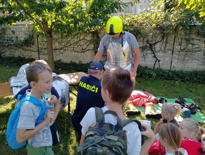 Sbor dobrovolných hasičů je sdružení obětavých lidí, kteří ve spolupráci s naší školou připravili pro žáky nezapomenutelné dopoledne. Na modřanském hřišti je čekala ukázka zásahové techniky a vozidel i mnoho aktivních úkolů. Kluci obdivovali specialní chemické obleky, obleky do velkého žáru i zbrusu novou čtyřkolku do těžce přístupného terénu. Děvčata si zase s nadšením vyzkoušela základy ošetřování a přepravy zraněných. Krásné počasí způsobilo, že všichni mohli z bezprostřední blízkosti sledovat požární útoky žákovských družstev z obcí Modrá i Salaš. Ani trocha vody nevadila. Požární útok předvedlo také smíšené družstvo dospělých. Vždyť požární sport již dávno není jen doménou mužů!