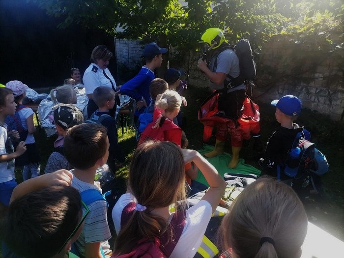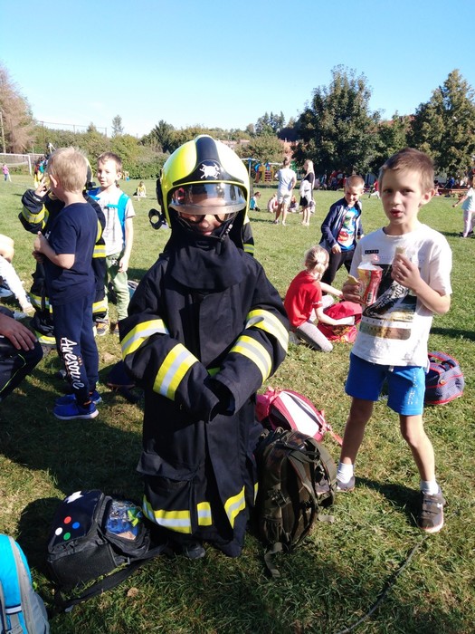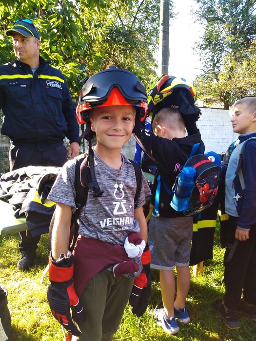 Sbor dobrovolných hasičů je sdružení obětavých lidí, kteří ve spolupráci s naší školou připravili pro žáky nezapomenutelné dopoledne. Na modřanském hřišti je čekala ukázka zásahové techniky a vozidel i mnoho aktivních úkolů. Kluci obdivovali specialní chemické obleky, obleky do velkého žáru i zbrusu novou čtyřkolku do těžce přístupného terénu. Děvčata si zase s nadšením vyzkoušela základy ošetřování a přepravy zraněných. Krásné počasí způsobilo, že všichni mohli z bezprostřední blízkosti sledovat požární útoky žákovských družstev z obcí Modrá i Salaš. Ani trocha vody nevadila. Požární útok předvedlo také smíšené družstvo dospělých. Vždyť požární sport již dávno není jen doménou mužů!