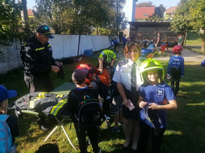 Sbor dobrovolných hasičů je sdružení obětavých lidí, kteří ve spolupráci s naší školou připravili pro žáky nezapomenutelné dopoledne. Na modřanském hřišti je čekala ukázka zásahové techniky a vozidel i mnoho aktivních úkolů. Kluci obdivovali specialní chemické obleky, obleky do velkého žáru i zbrusu novou čtyřkolku do těžce přístupného terénu. Děvčata si zase s nadšením vyzkoušela základy ošetřování a přepravy zraněných. Krásné počasí způsobilo, že všichni mohli z bezprostřední blízkosti sledovat požární útoky žákovských družstev z obcí Modrá i Salaš. Ani trocha vody nevadila. Požární útok předvedlo také smíšené družstvo dospělých. Vždyť požární sport již dávno není jen doménou mužů!