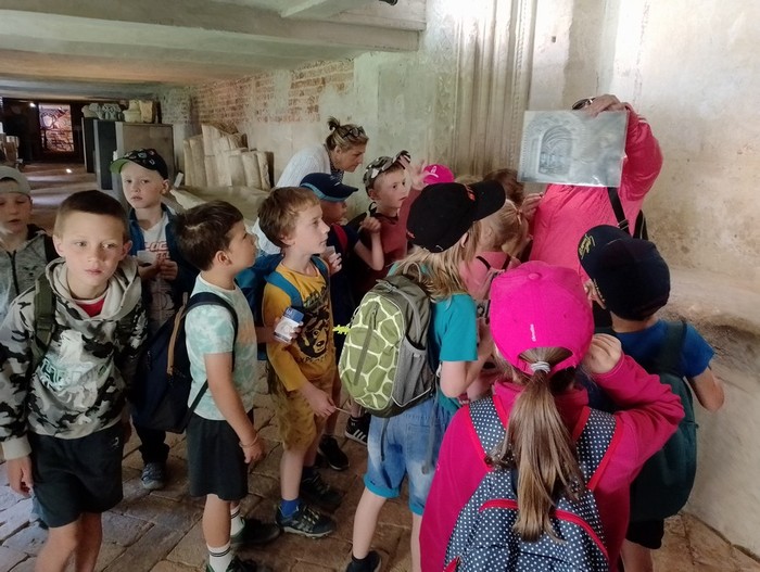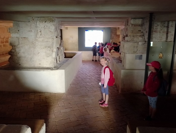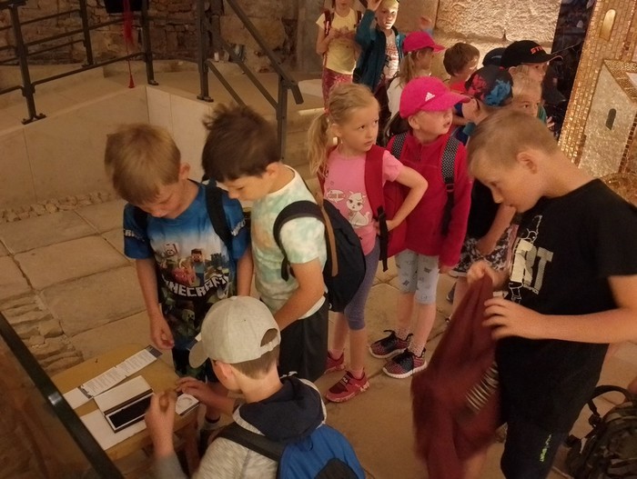 V podzemí velehradské baziliky nás čekala průvodkyně, paní Antošová, která si připravila pro děti mnoho všetečných dotazů. Naši zvídaví žáčci však na všechny její otázky brzy našli odpovědi. Snad proto, že najít indicie bylo pro ně zábavou.